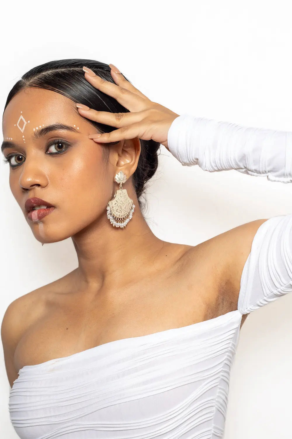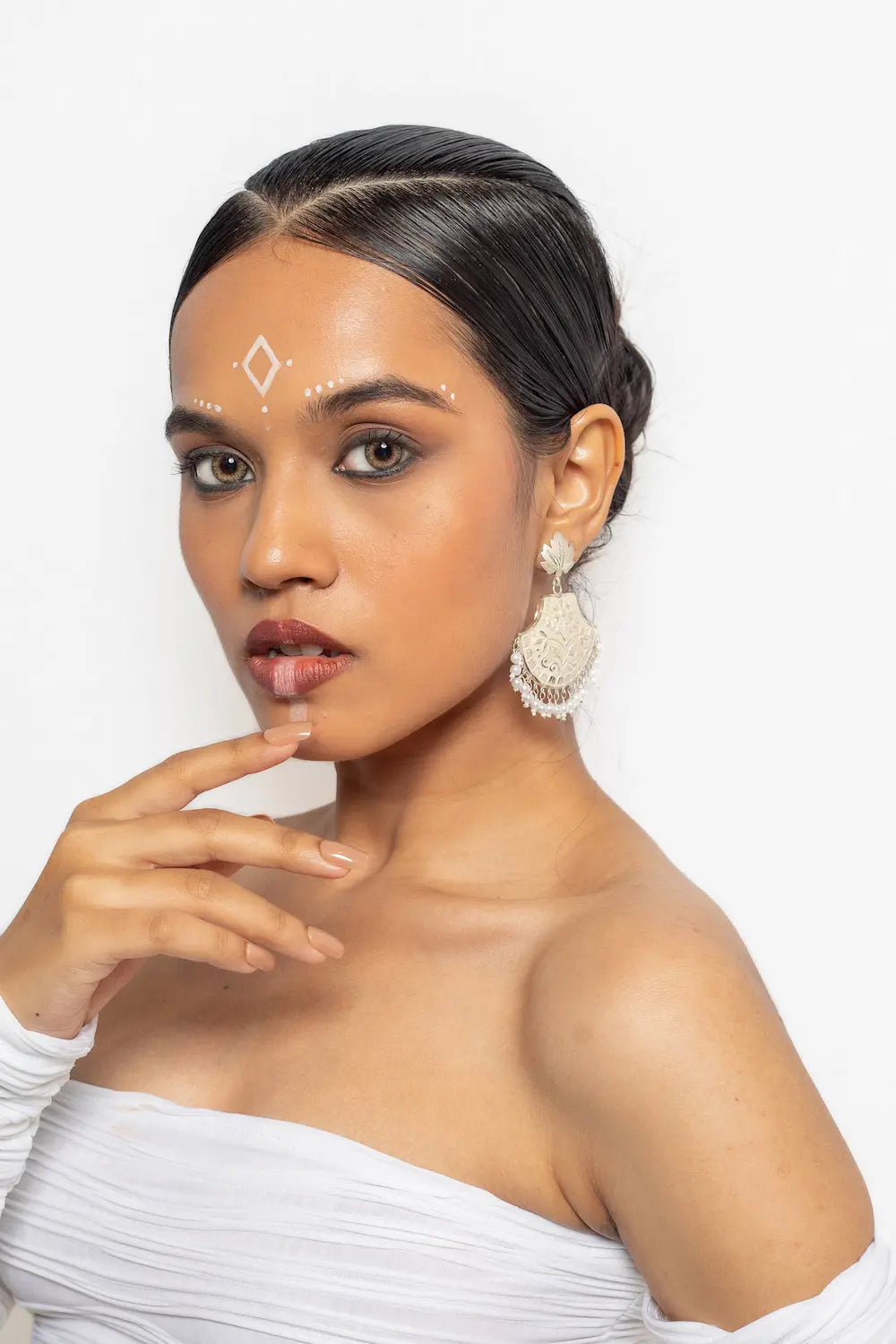- Looking for a stunning pair of earrings that will make you stand out at any wedding or festival? Look no further than the Akhnoor earring! With a beautiful leaf design and elegant pearl accents, these silver earrings are the perfect accessory for any special occasion.