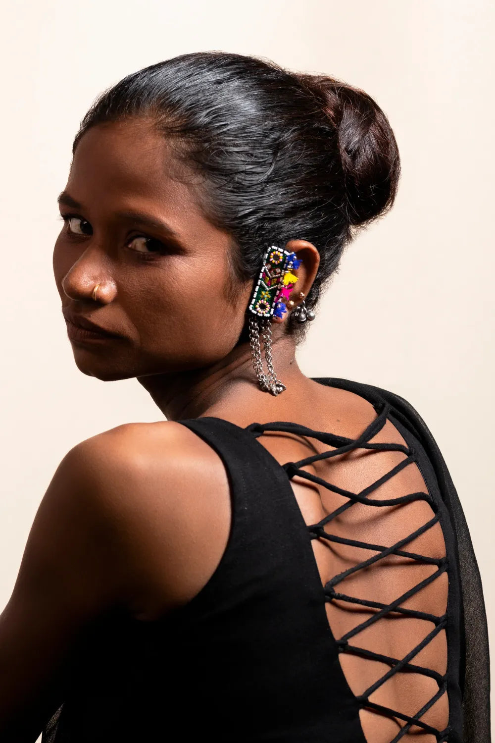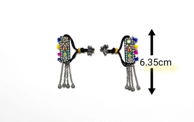 Celebrate festivals with style wearing our Kruti Arts Handcrafted Earrings. These one-of-a-kind earrings are skillfully designed, combining beads, khadi fabric, oxidized metal, silk threads, and wool to create a captivating accessory. Each piece is meticulously handcrafted, ensuring a unique and distinctive look. Available in an array of colors Black, Blue, Pink, Yellow, and White to match your preferences. Embrace the spirit of craftsmanship and artistry with these earrings that effortlessly complement traditional and contemporary outfits alike. Make a statement at every occasion with these stunning festival earrings from Kruti Arts, a brand renowned for its quality and creativity.