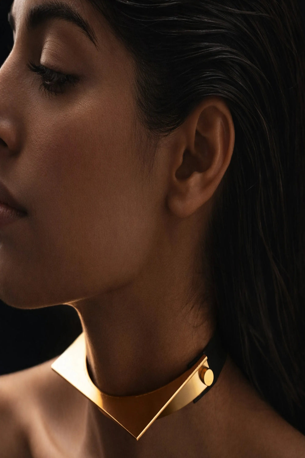 This exquisite necklace tells a story of captivating beauty, designed to make an impression. Each detailed petal-like element creates a stunning adornment that gracefully highlights your neckline.