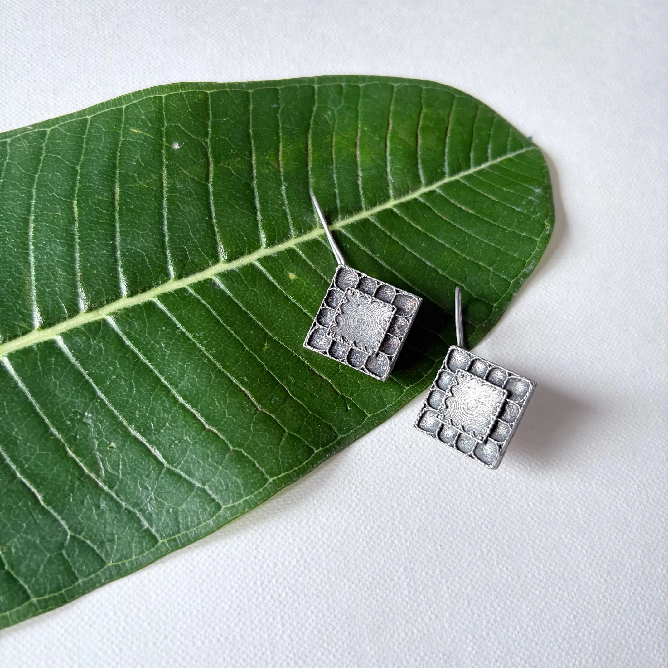 These captivating earrings tell a story of unique artistry, designed to make a confident impression. Each earring features a cohesive, central medallion formed by a cluster of textured, curved shapes that catch the light beautifully.