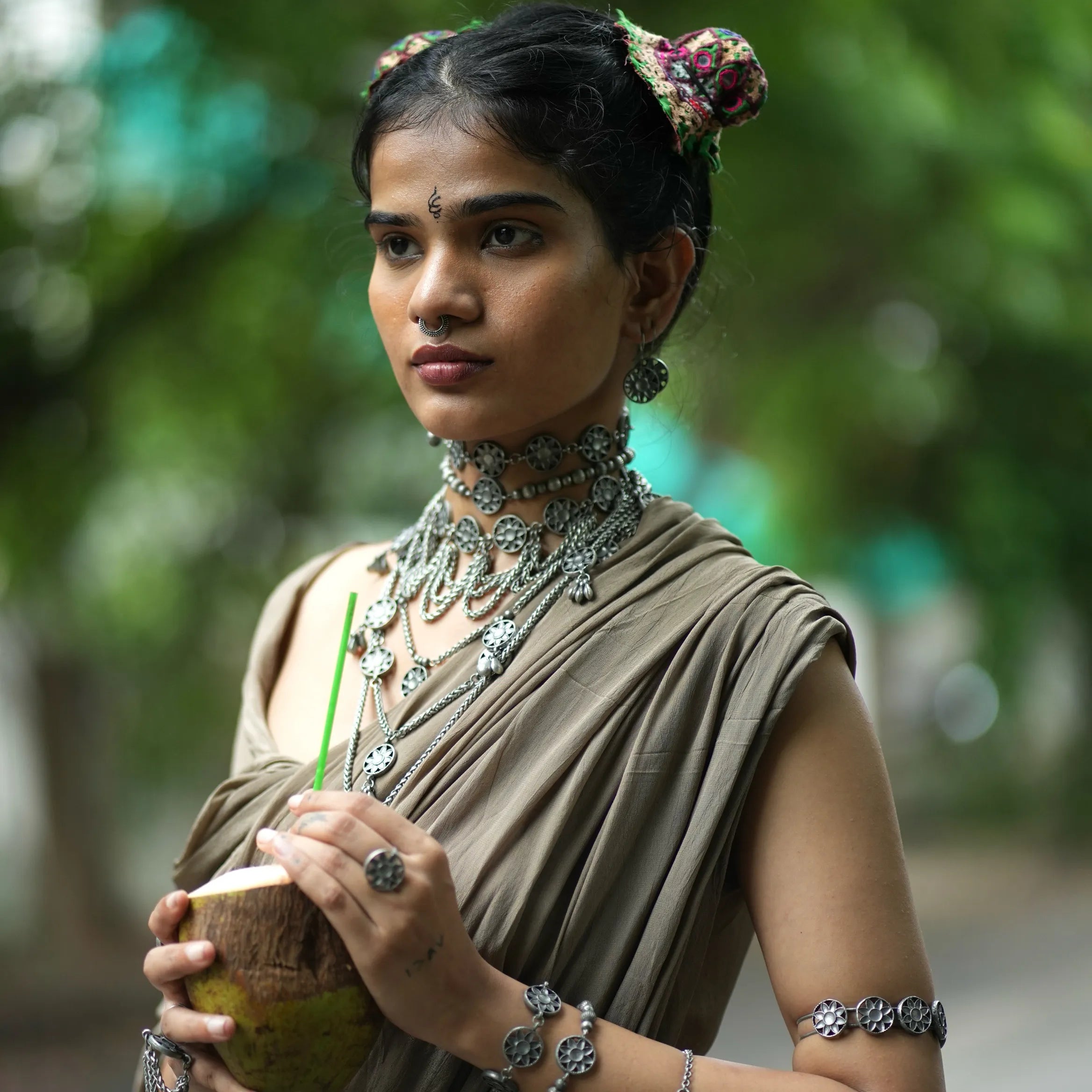 Drawing from historic tribal patterns, this chained medallion necklace embodies a narrative of strength. Its layered design connects you to a legacy of bold aesthetics, ideal for the modern wearer.