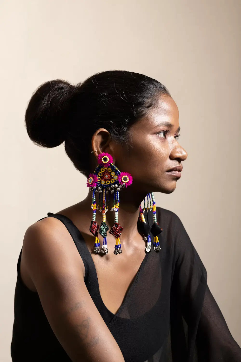 - Materials: Beads, khadi fabric, oxidised metal, Silk Thread, wool