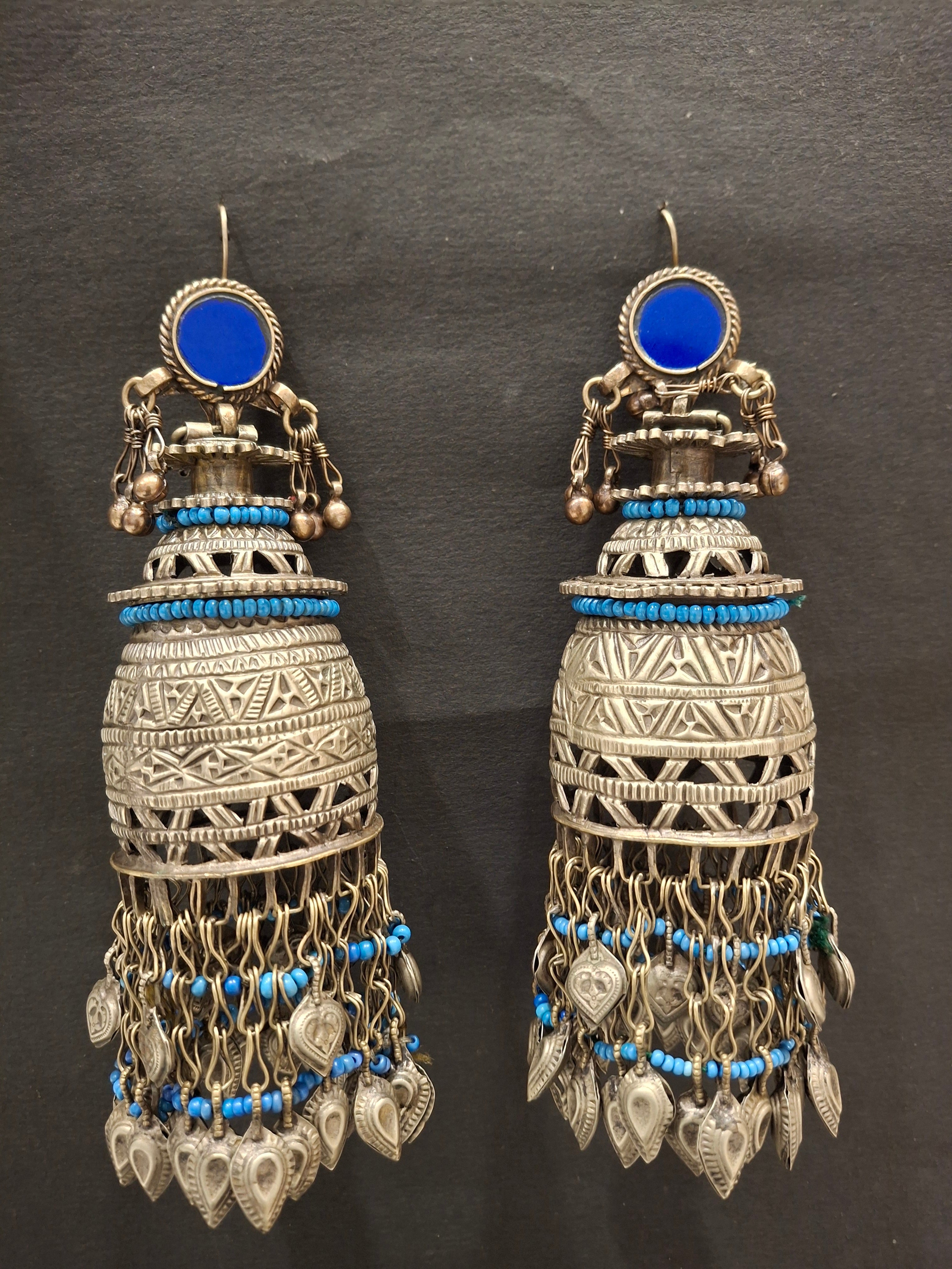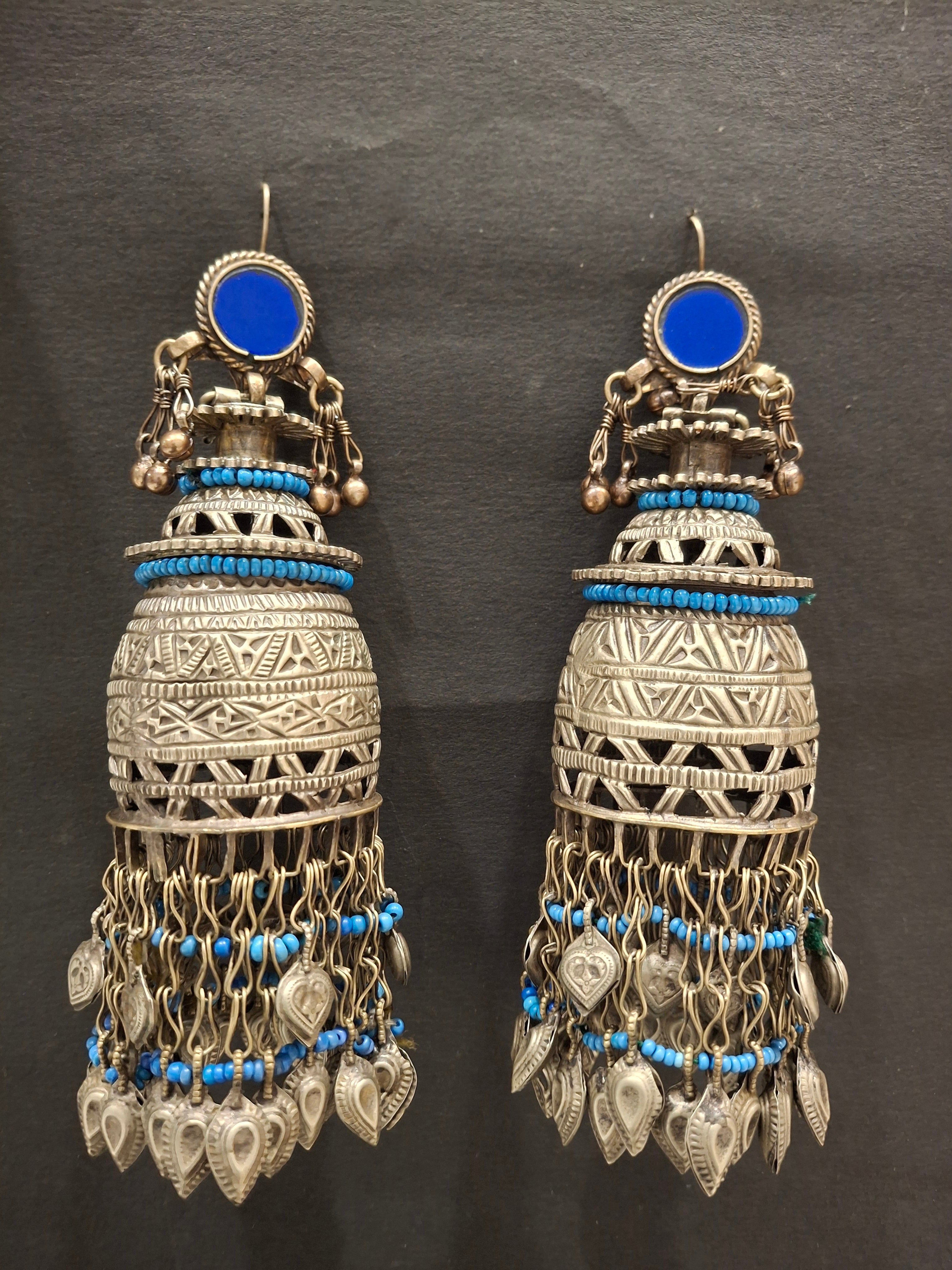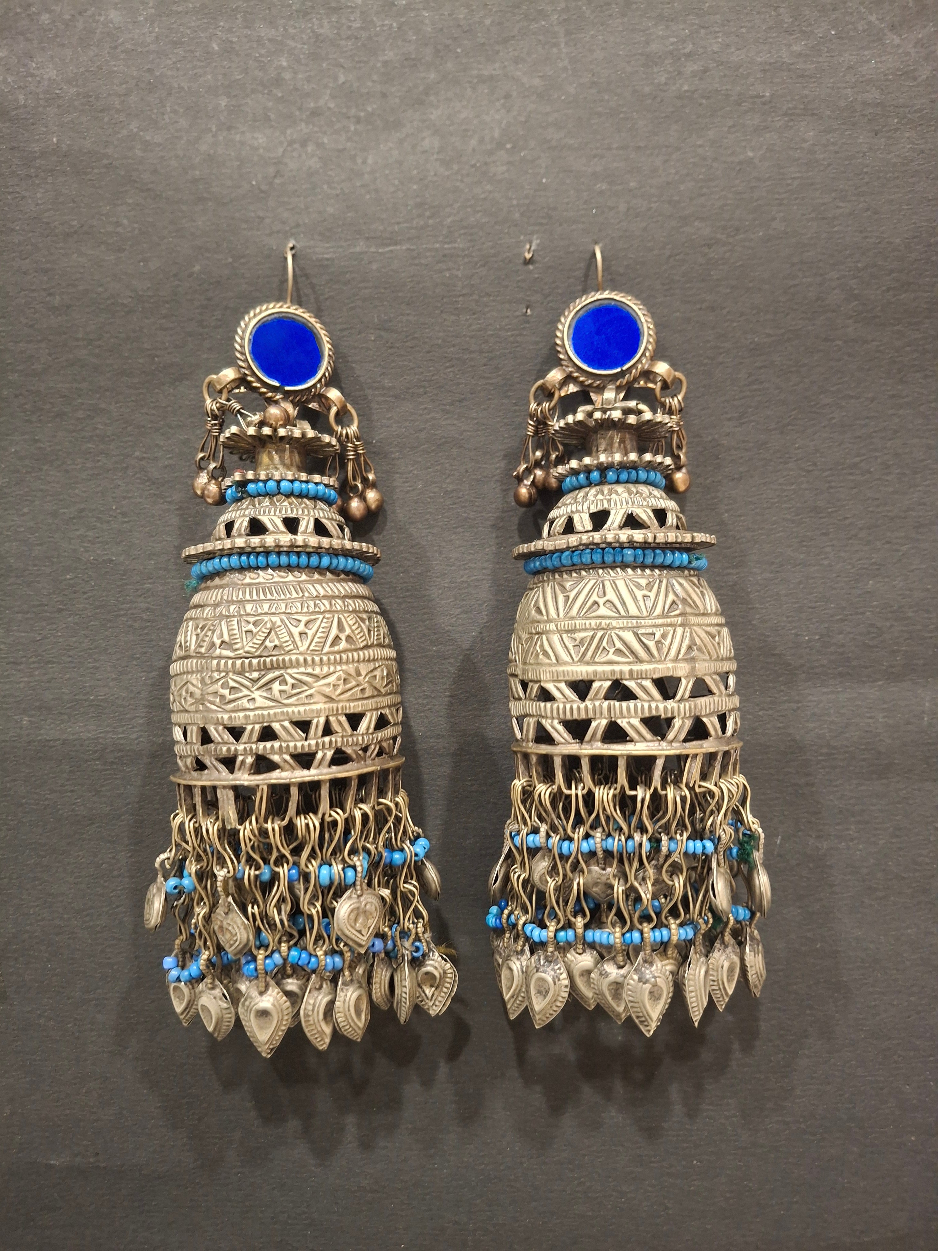 These Vintage Jhumka Earrings are designed in German silver, featuring bold blue accents that highlight their old-world appeal. With their timeless structure and intricate detailing, they bring heritage-inspired jewelry into the modern wardrobe.