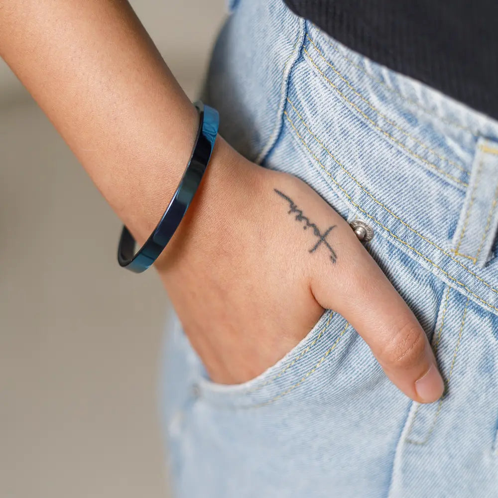 Experience the fusion of style and durability with the Blue Luster Stainless Steel Bracelet. Featuring a unique anti-tarnish, openable design, this daily wear bracelet combines contemporary aesthetics with practicality.