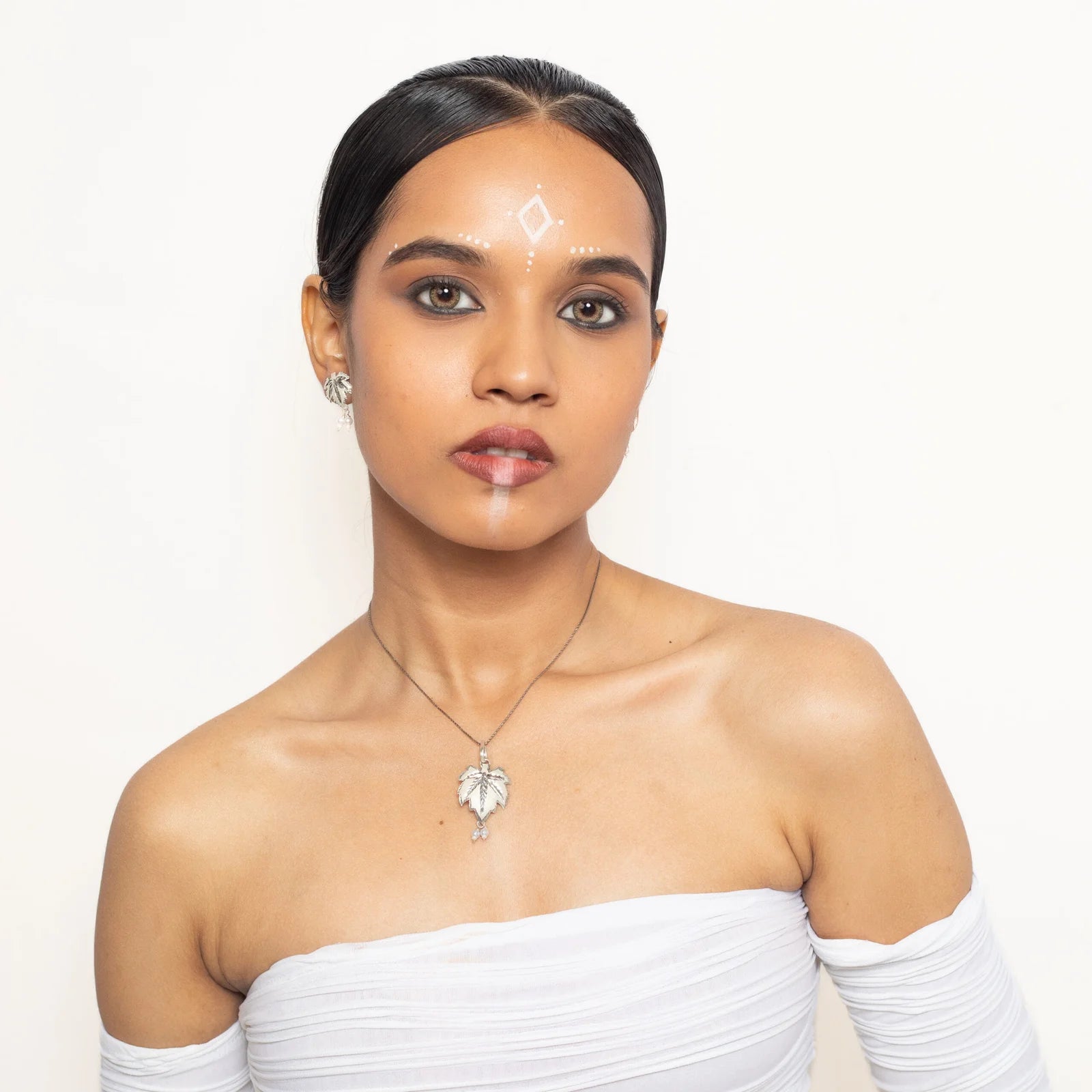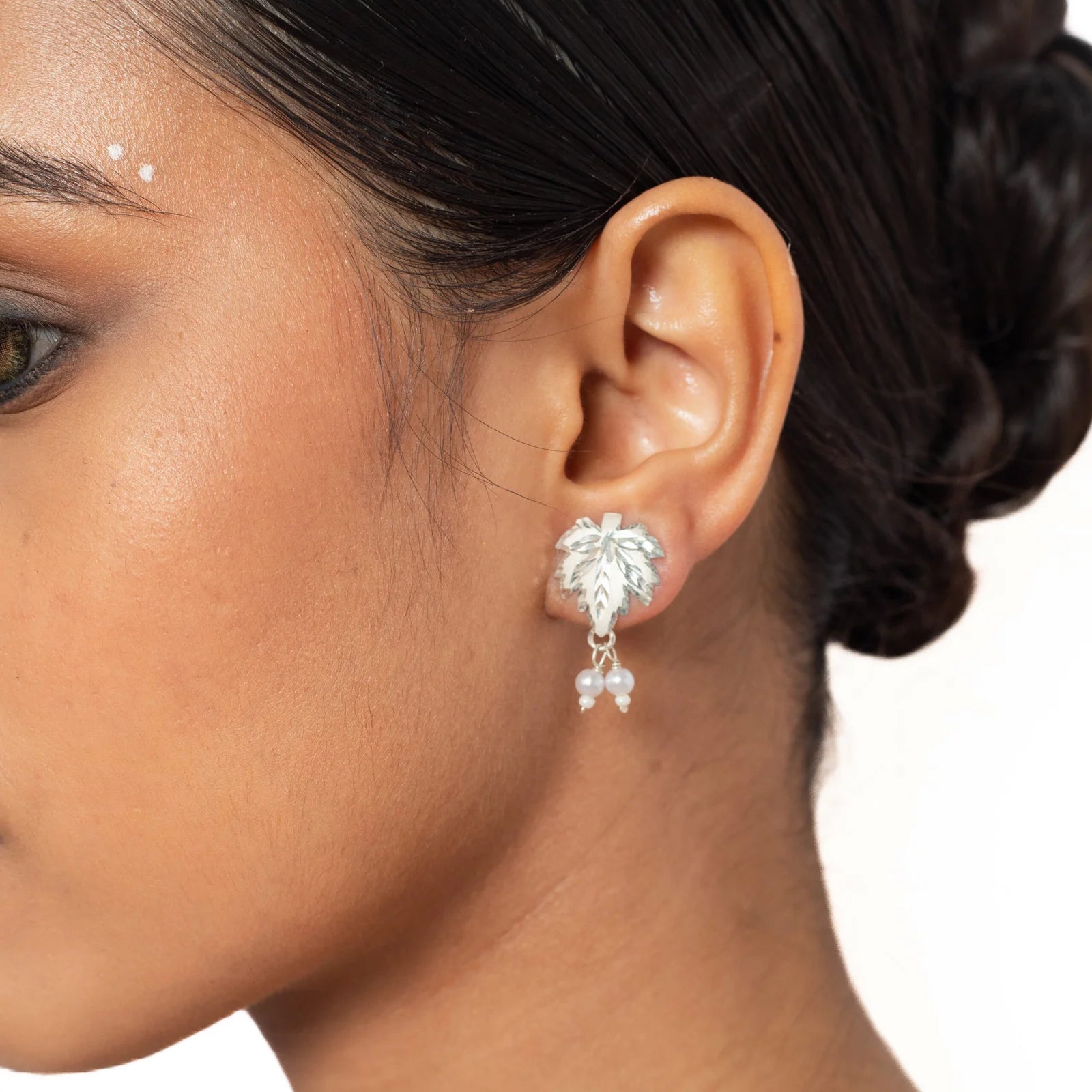 Handcrafted in Kashmir, these high-quality silver stud earrings feature a distinct Chinar leaf pendant design. Versatile and stylish, they are reconfigurable to match our exquisite gold jewellery offerings.