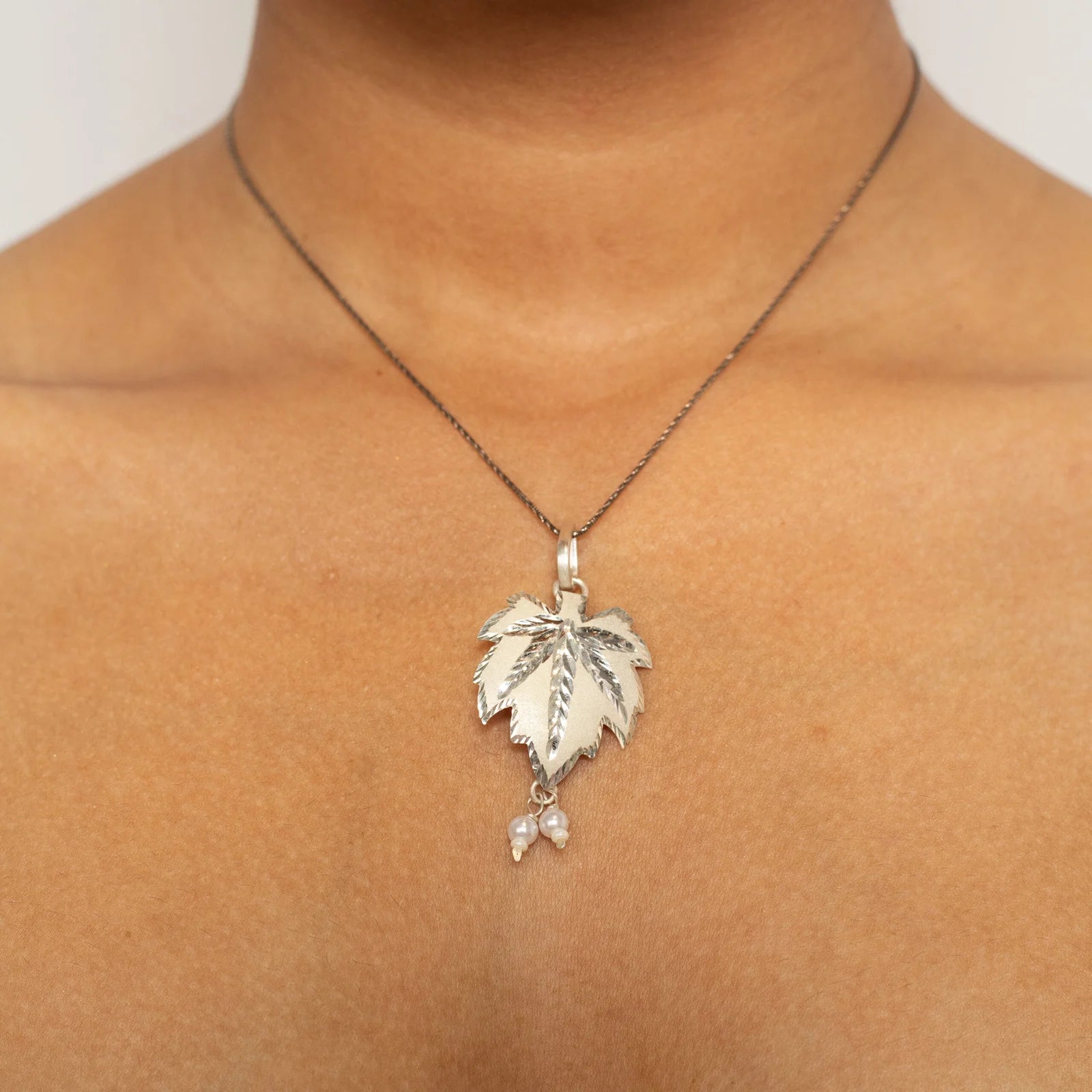 Love the leaf shape and the tiny pearls. Feels like a handcrafted artwork.