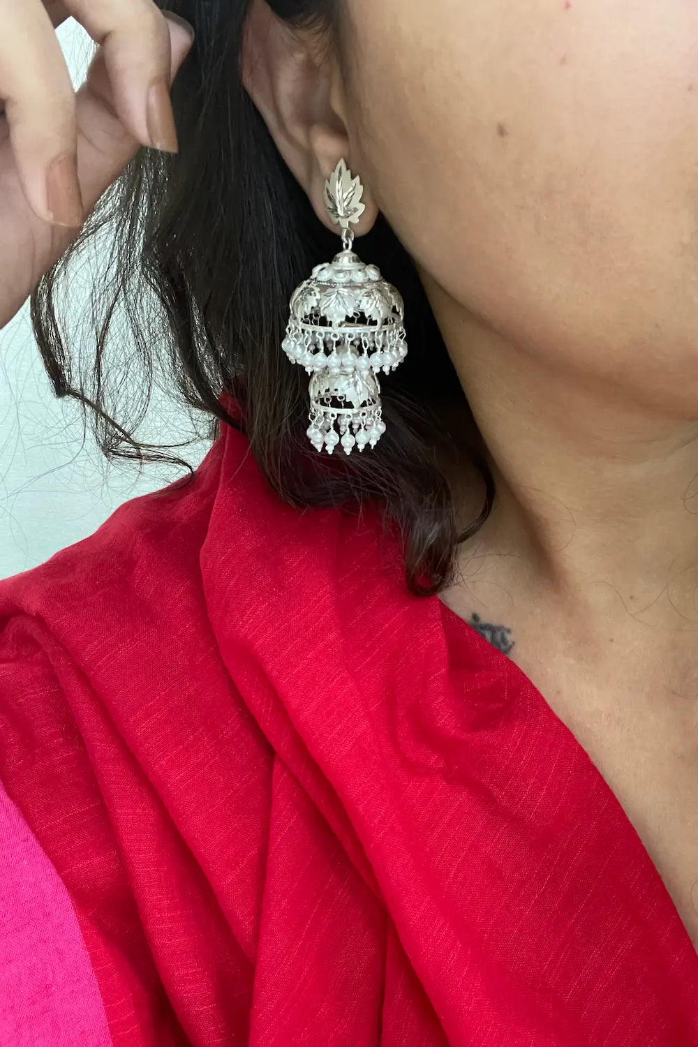 Yeh earrings itne beautiful hain! Pearl aur silver ka look toh bahut hi elegant lagta hai. Main inhe apni sister’s wedding pe pehene thi, and it was a hit.