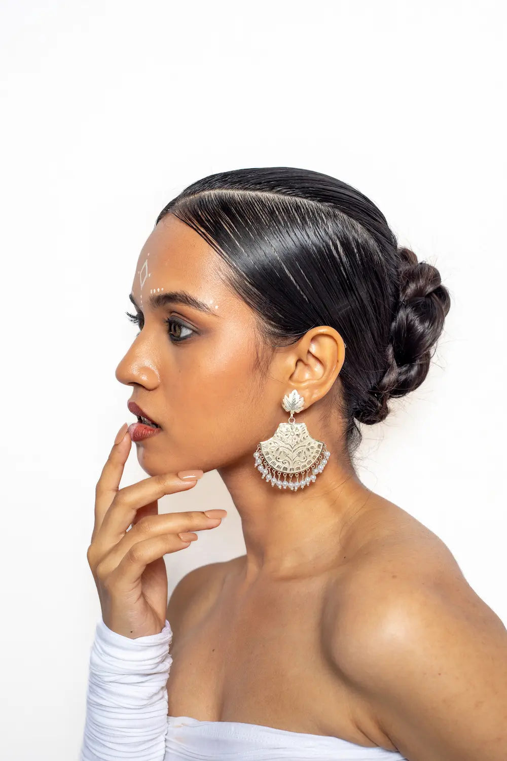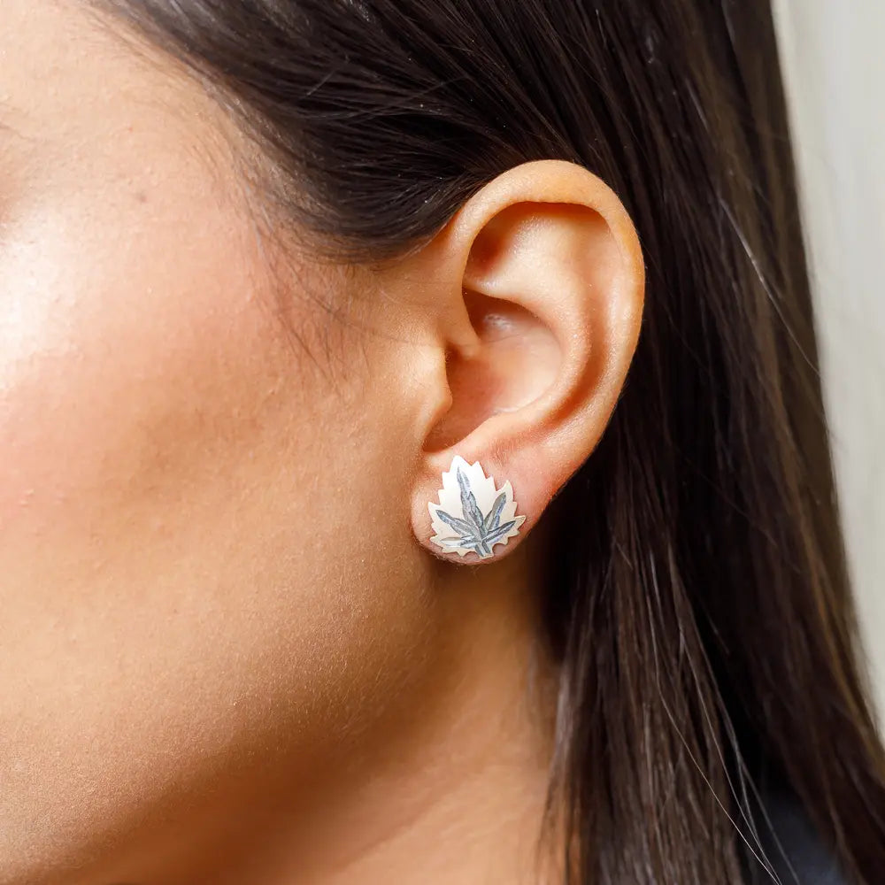Adorn yourself with the Akhnoor Earrings and Kashmiri Leaf Studs, handcrafted in 92.5 silver with white stones. This elegant duo blends traditional artistry with timeless charm, perfect for every occasion. Radiate confidence with these exquisite, versatile accessories.