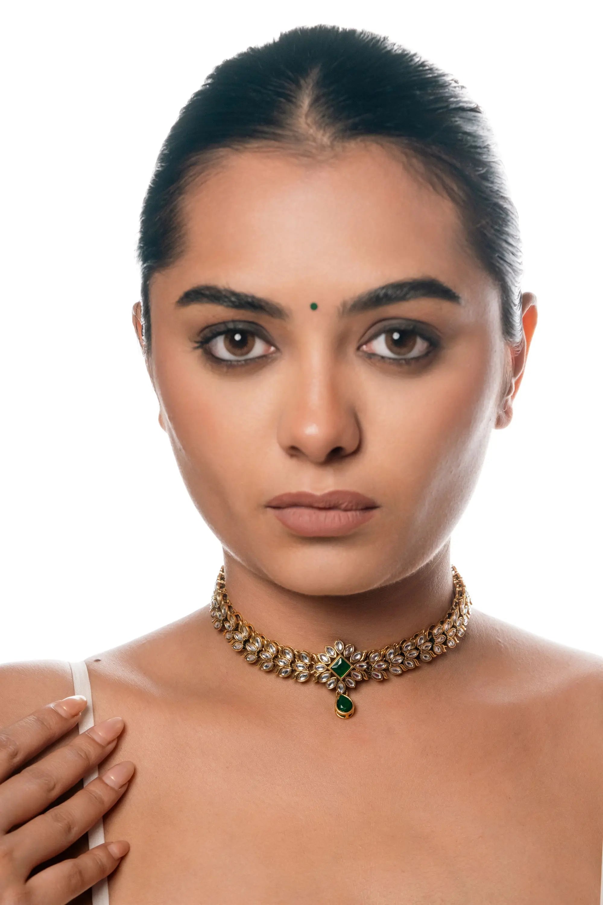 Luxurious Green and Gold Matha Patti with Premium Kundan Stones
