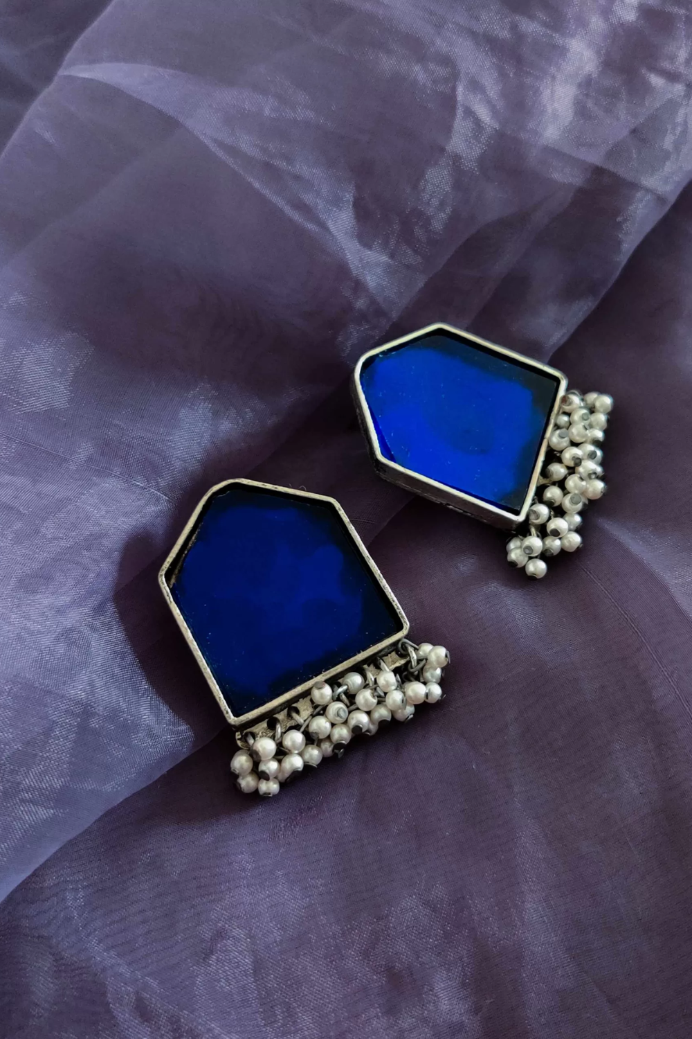 - Introducing Hexa Glasswork Stud Earrings, a delicate masterpiece crafted with love. Adorned with sparkling glass studs, this earring is perfect for any occasion – be it a festival, wedding, party, or even your everyday look. Available in stunning shades of Blue, White, and Silver, it’s time to embrace elegance effortlessly.