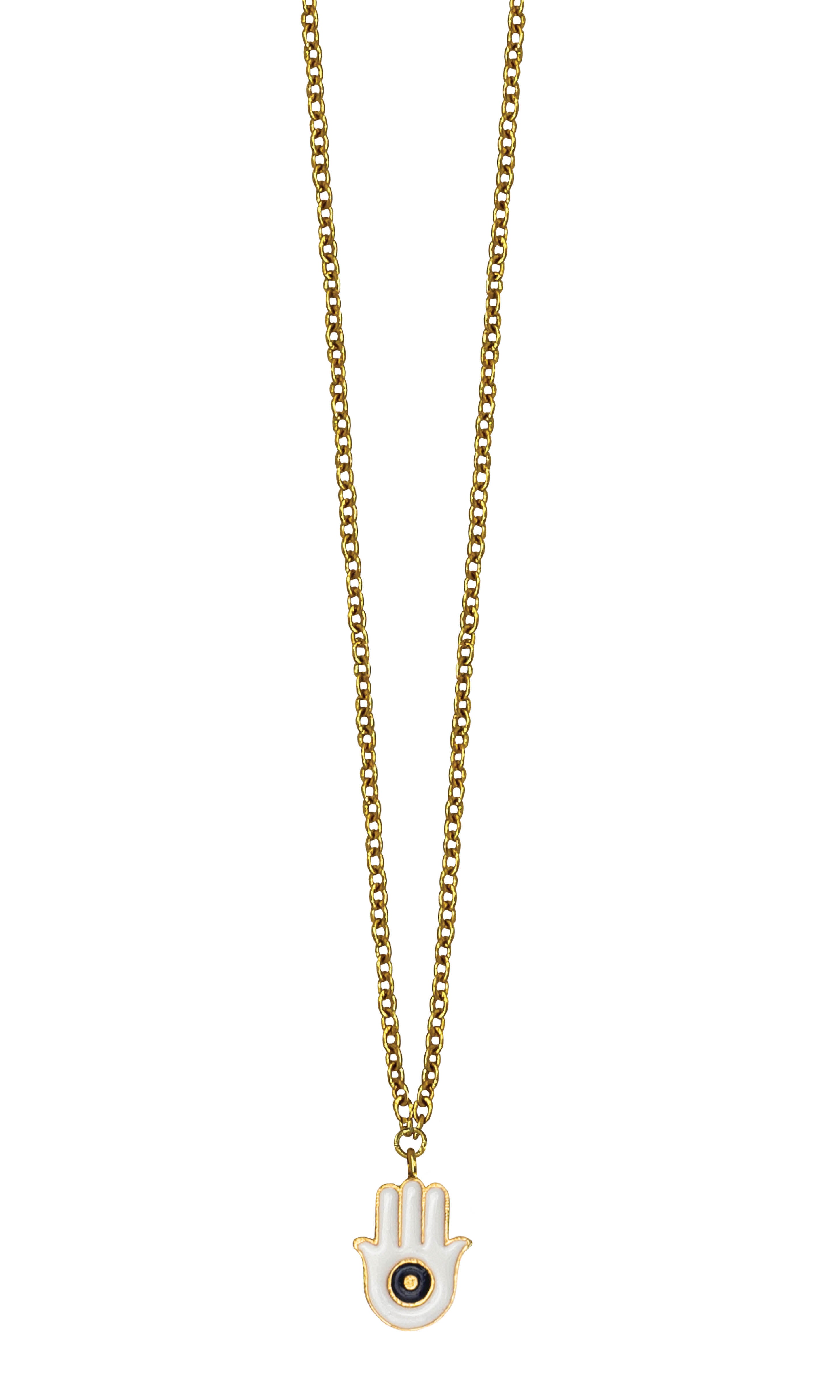Adorn your neck with this Humsa charm to protect your aura and vibe. It' s a great gifting option too. It is handcrafted using enamel and 18k gold plated brass. This collection exhibits amazing enamel charms with an elegant design that is created using an ornamental engraving technique.