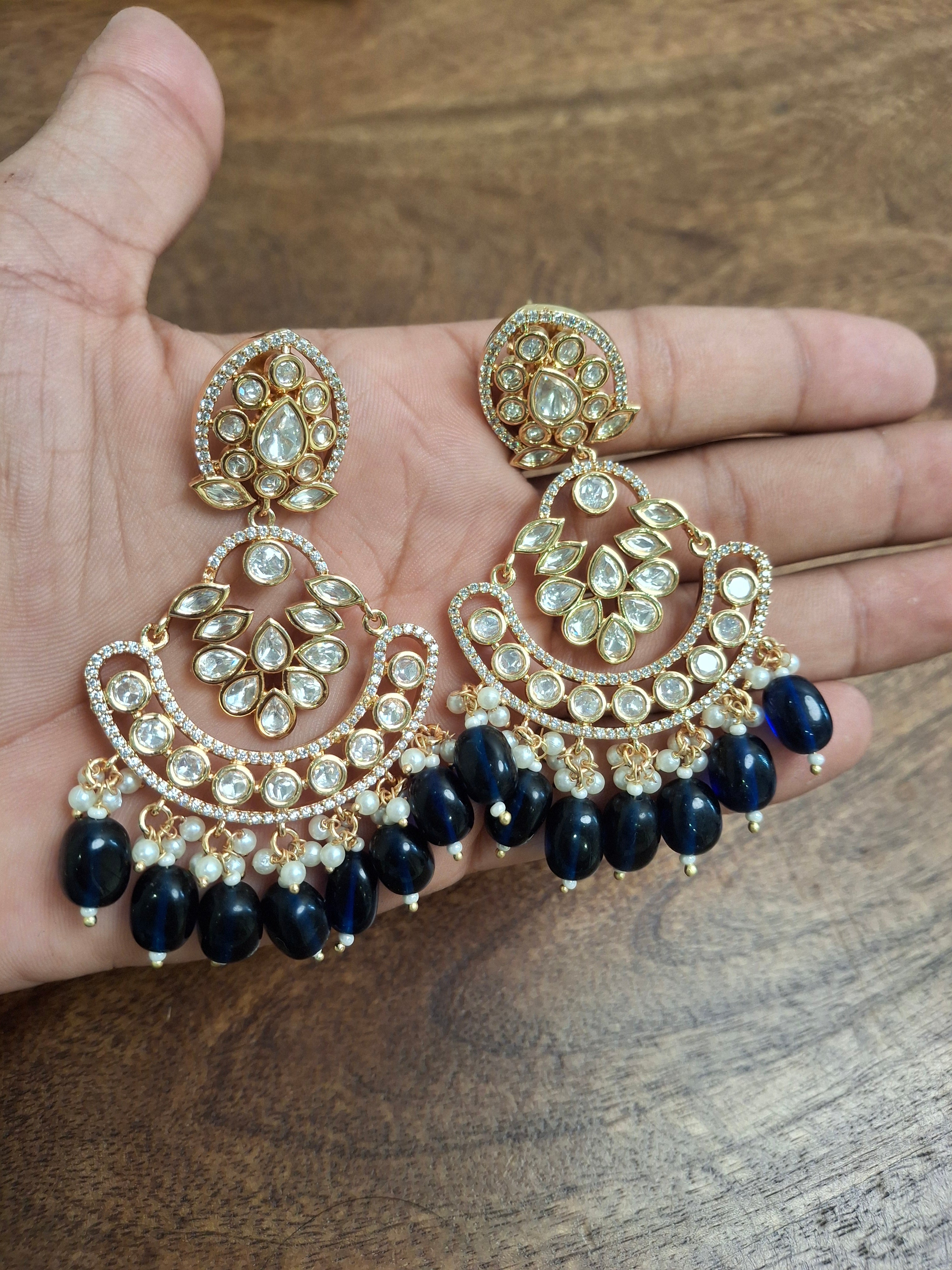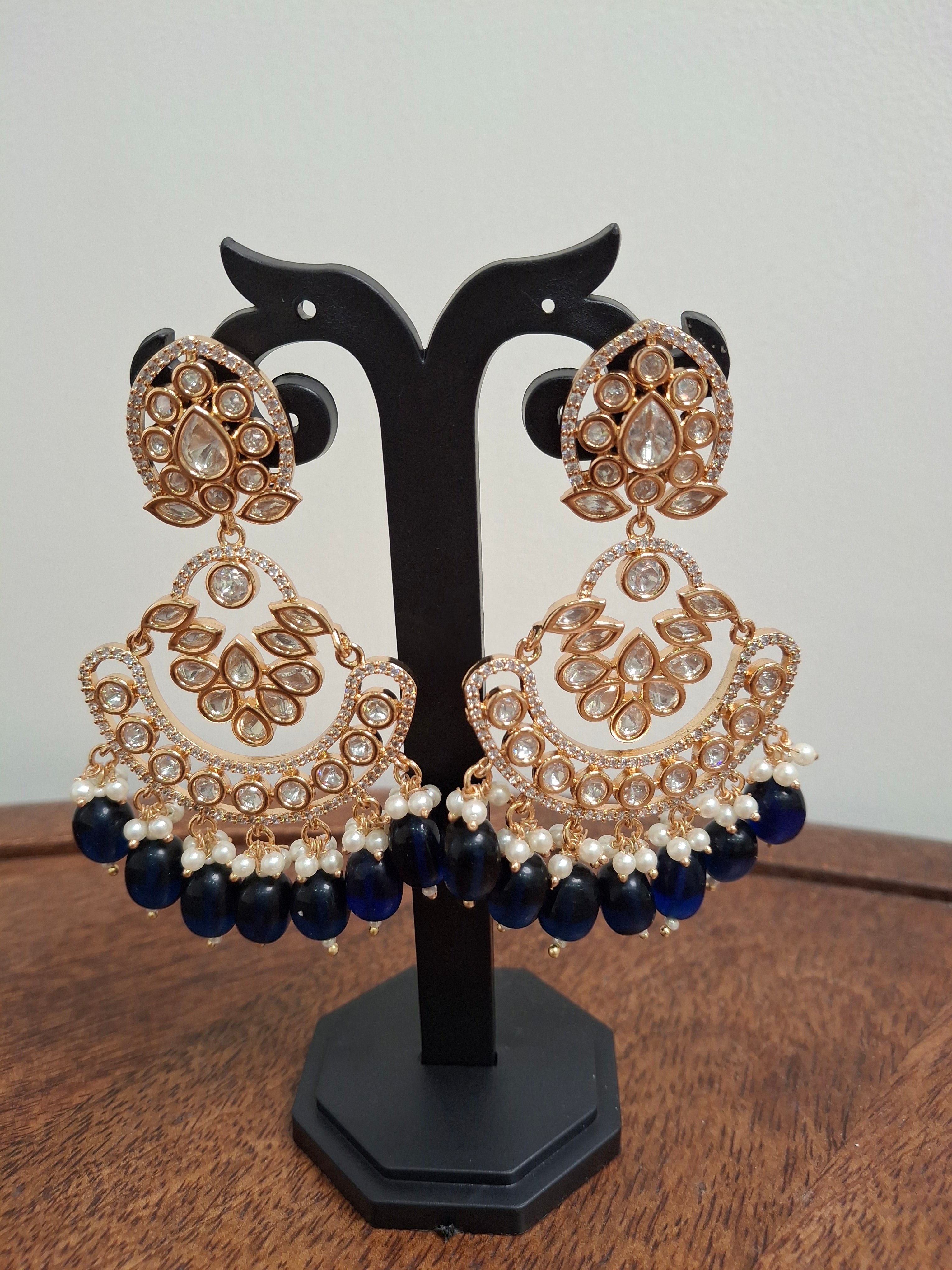 Exquisite Kundan Earrings with Dazzling Blue & White Stones