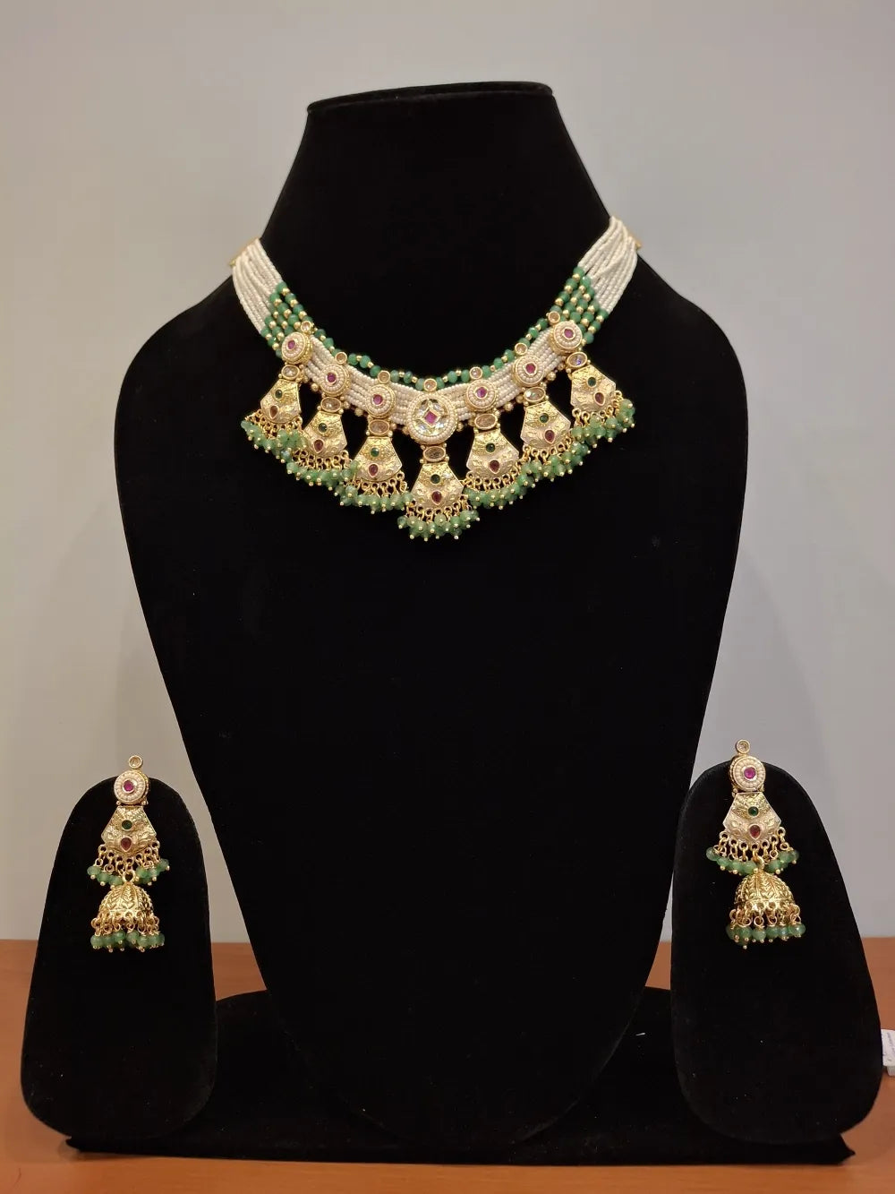 Each piece reflects the precision of Indian craftsmanship with a modern aesthetic. The layered chains flow seamlessly, dotted with blue enamel-inspired accents, while the spherical studs echo the same textured artistry — striking the perfect balance between tradition and design innovation.