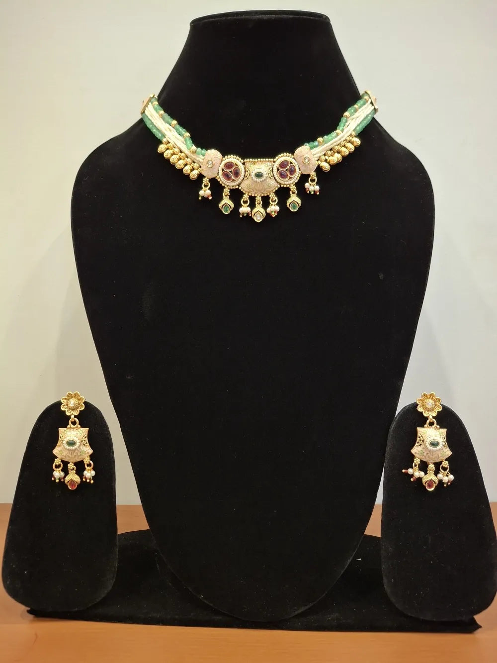 Handcrafted Layered Necklace Set with Deep Blue Detailing and Stud Earrings