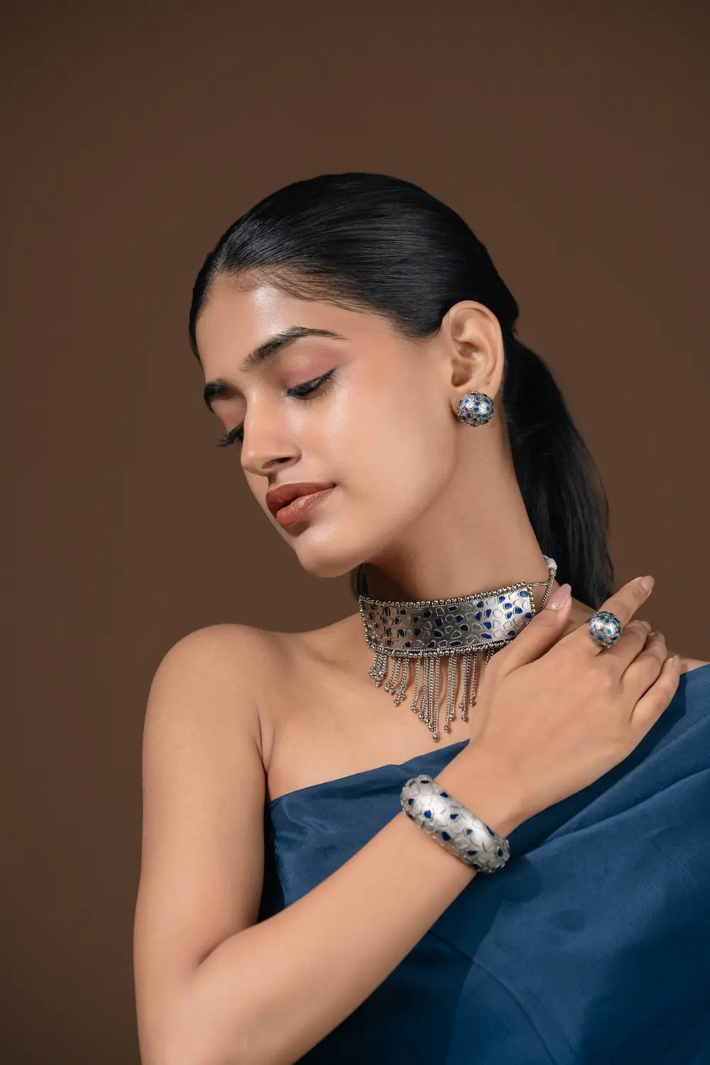 Dome earrings come in a million forms and are perhaps the most popular form of earrings to own and adorn. So if you are looking for a feminine one to add to you jewellery closet, this here is your go-to piece. The silver and sapphire blue enamel make this piece versatile, wearable and unique for you to hold on to forever.