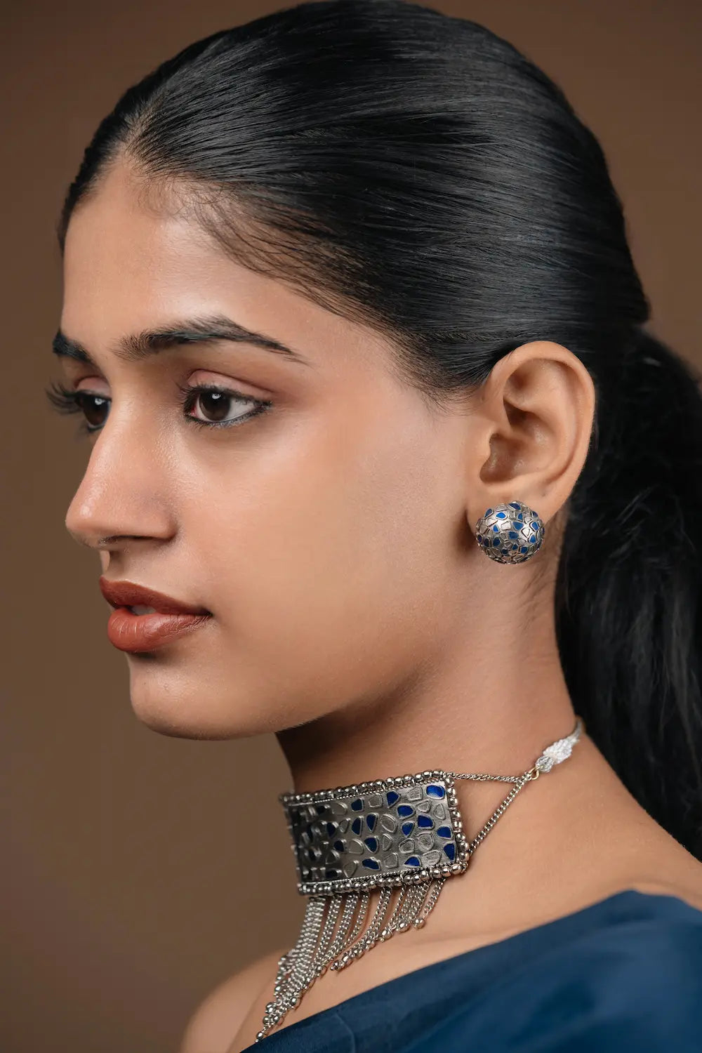 Raas Soul Studs Blue Enamel Domes, Made to Stand Out