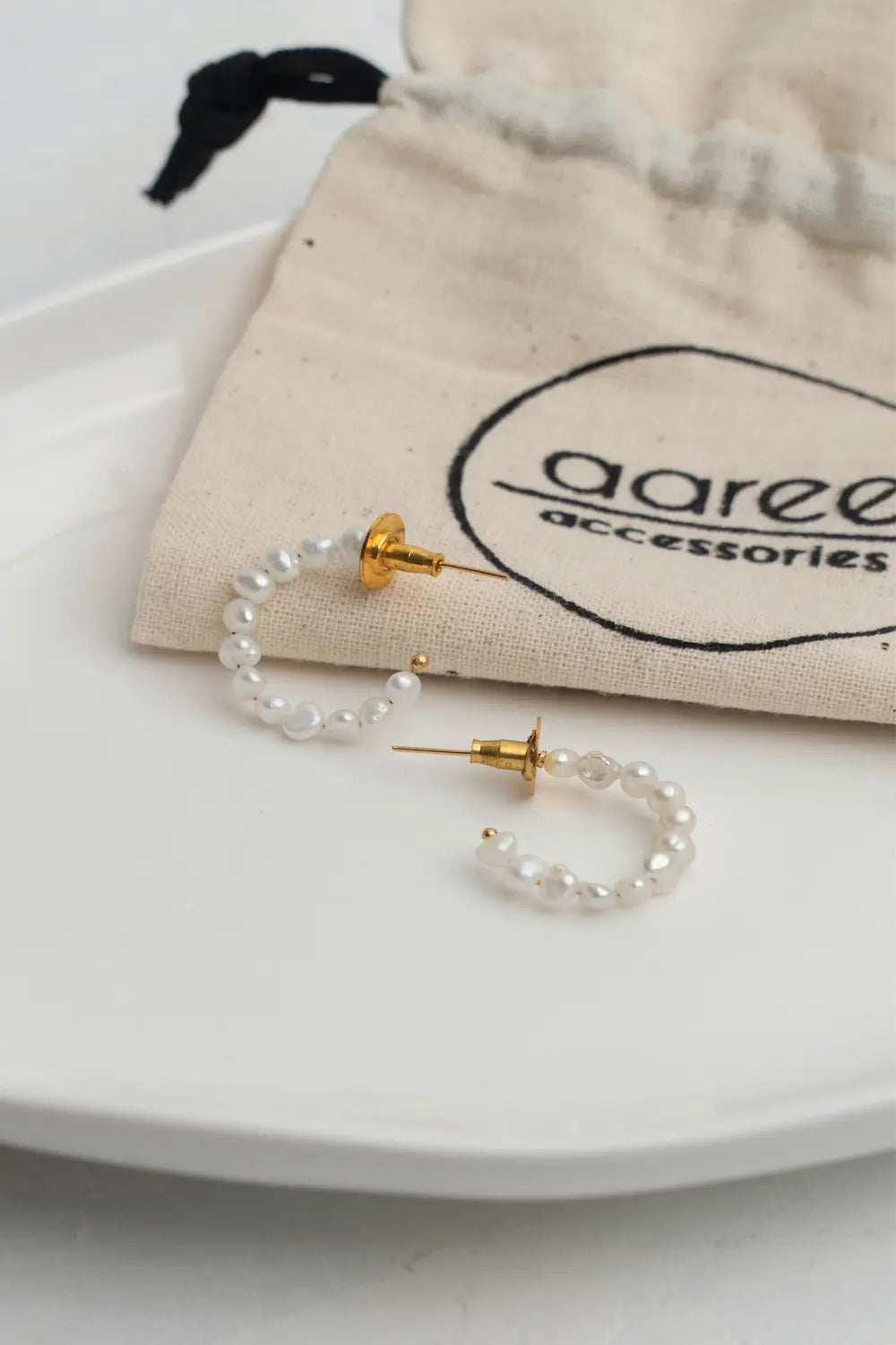 Pearl Hoops are the new beautiful. The earrings are handcrfted to perfection using gold plated brass and fresh water pearls sourced from Jaipur. These earrings are inspired from the beautiful flower Mogra which is used by all the idividuals. From gajra to dance forms to pujas.