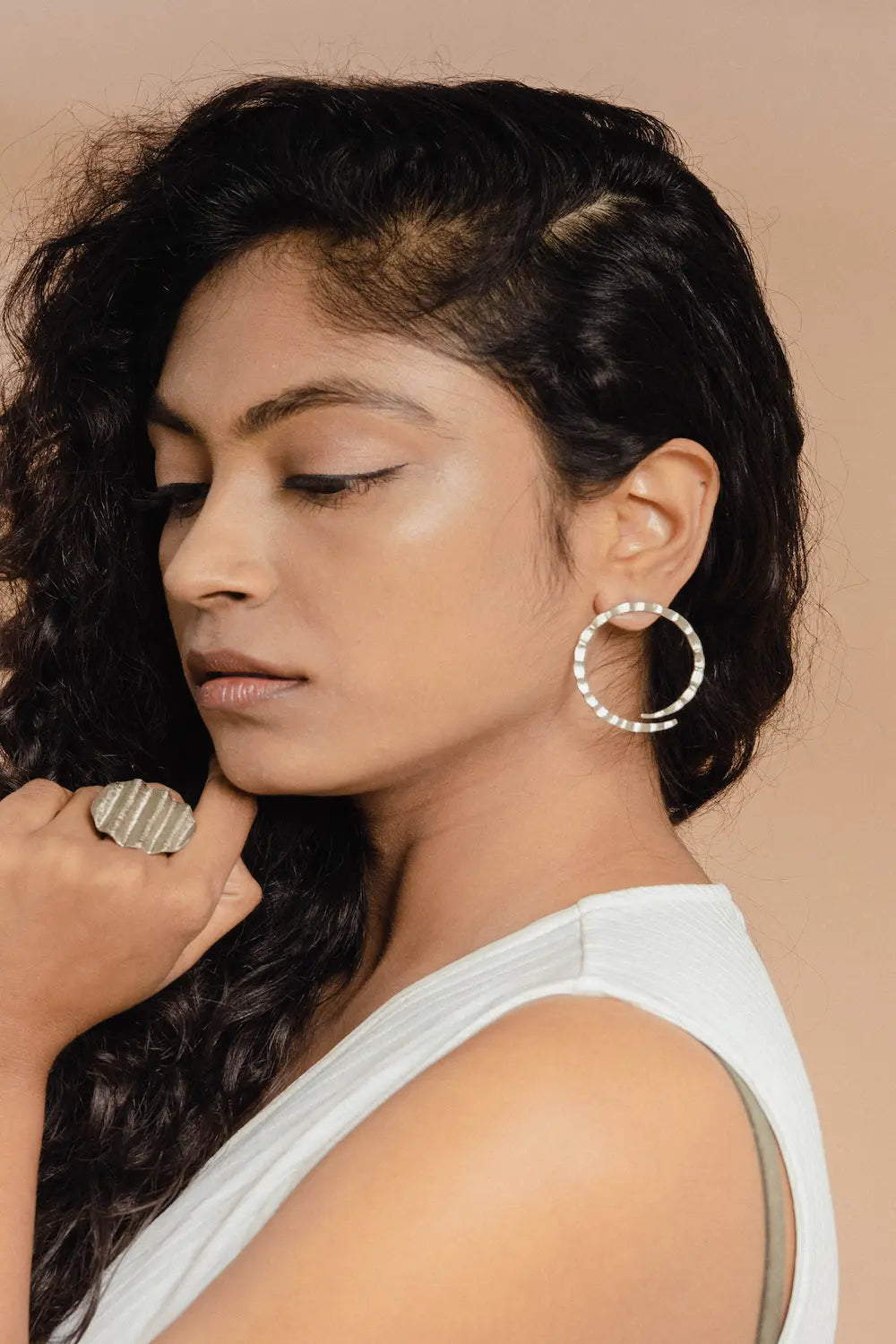 For all the strong yet beautiful, humble yet bold women out there, these gorgeous earrings are for you. Inspired by the flow of an ocean; a flow similar to the multifacets of a woman, the earrings are handcrafted by local artisans using hammering and folding technique in 18kt gold plated brass.