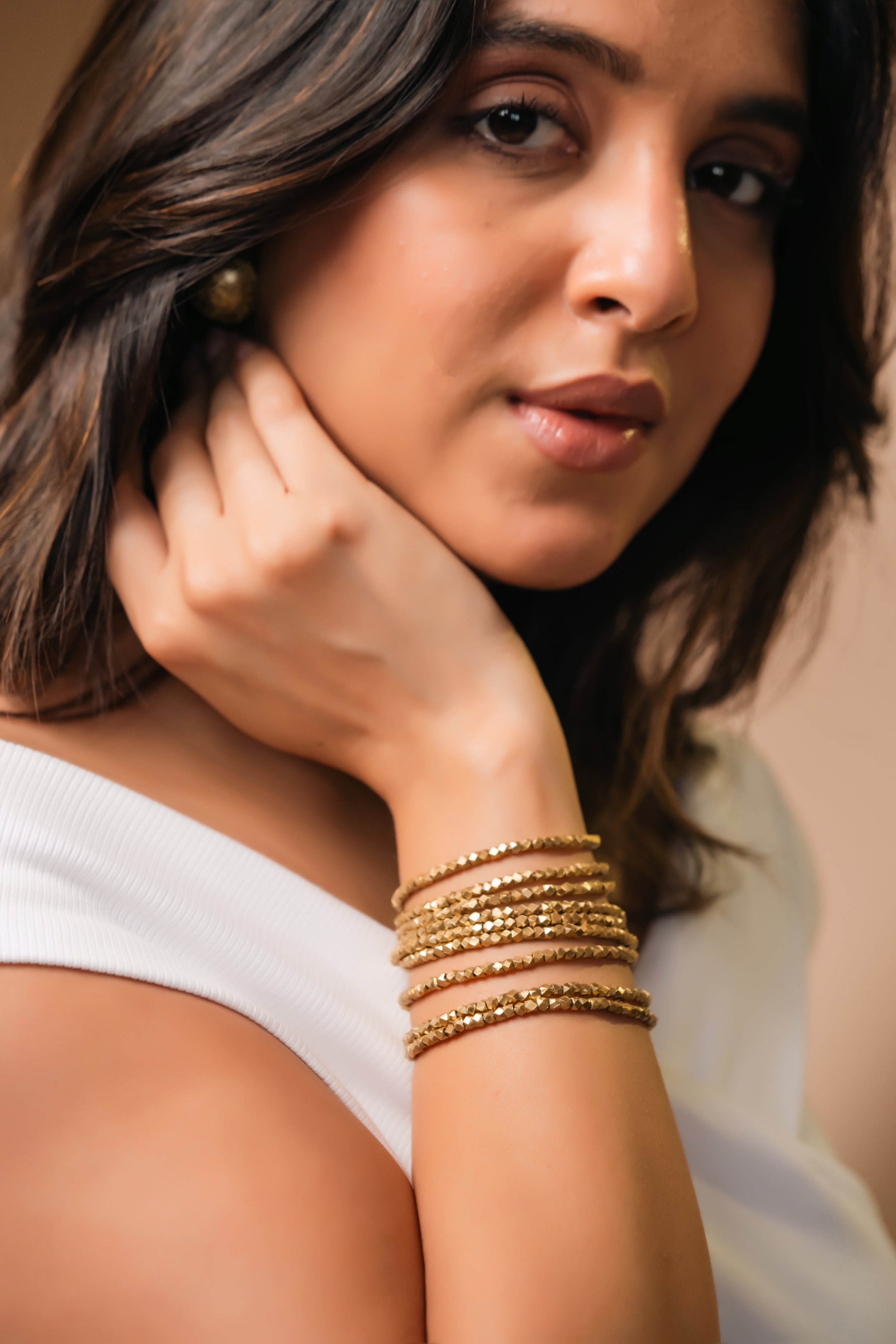 Minimal: Style the studs and bracelet with everyday outfits for a subtle touch.