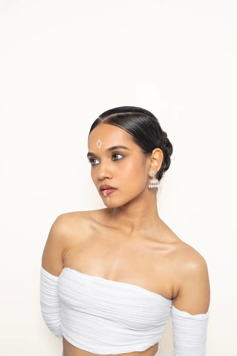 - These Safed Jumkhi earrings are small jhumkis made of silver with a pearl jhumka. They are perfect for weddings, festivals, occasions, or everyday wear. The silver material adds a touch of elegance to any outfit.
