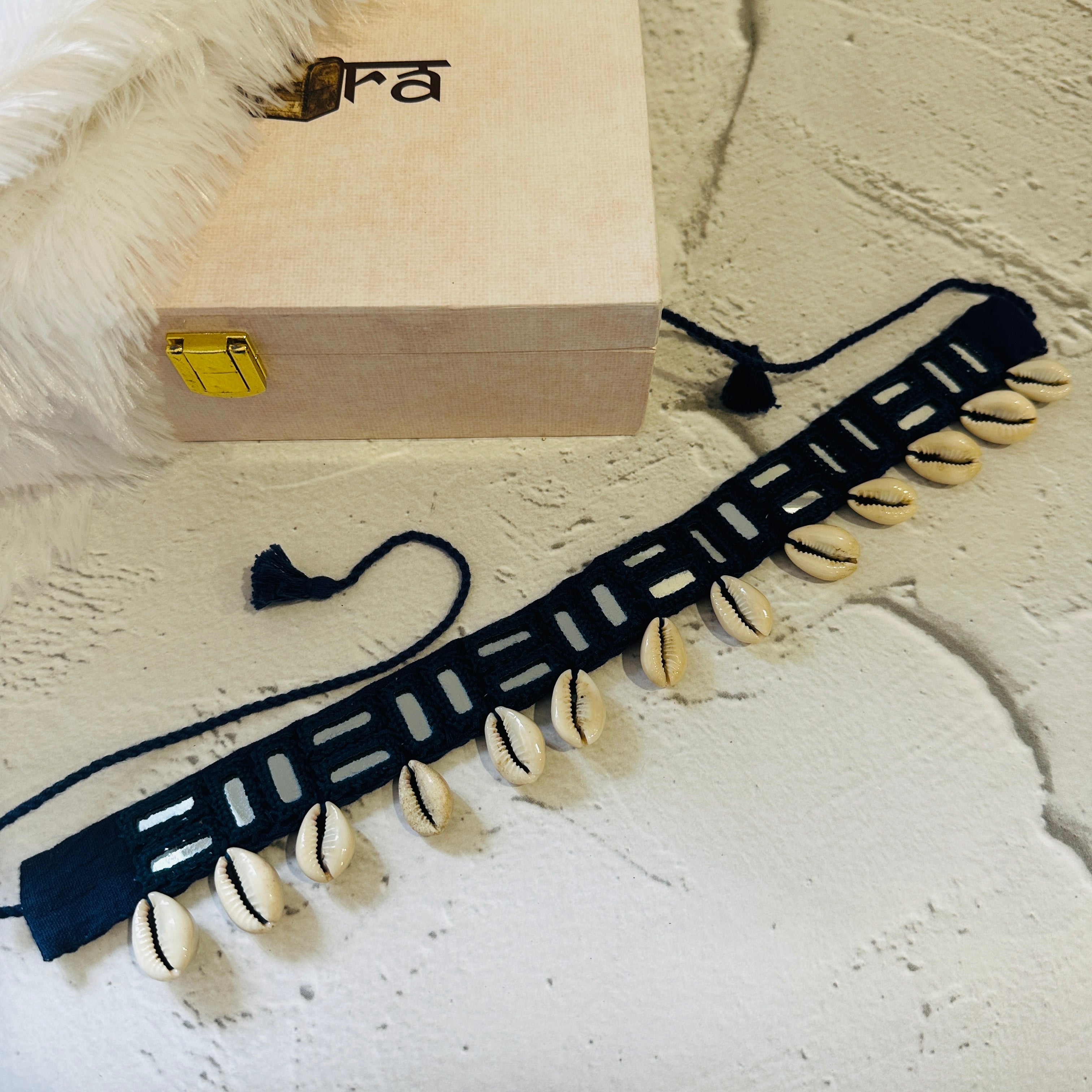Dazzle in our Shobhana Choker Necklace, a must-have for Navratri celebrations. This exquisite necklace comes in Five captivating colors: Black, Beige, Mustard, Blue and Dark Green. Adorned with intricate mirror work and featuring kodi, it adds a touch of cultural richness and elegance to your attire. Whether you are wearing traditional outfits or contemporary ensembles, this choker effortlessly elevates your style. Embrace the vibrant spirit of Navratri with this statement piece that beautifully merges tradition and modernity, ensuring you stand out during the festivities while celebrating in a kaleidoscope of stunning colors.