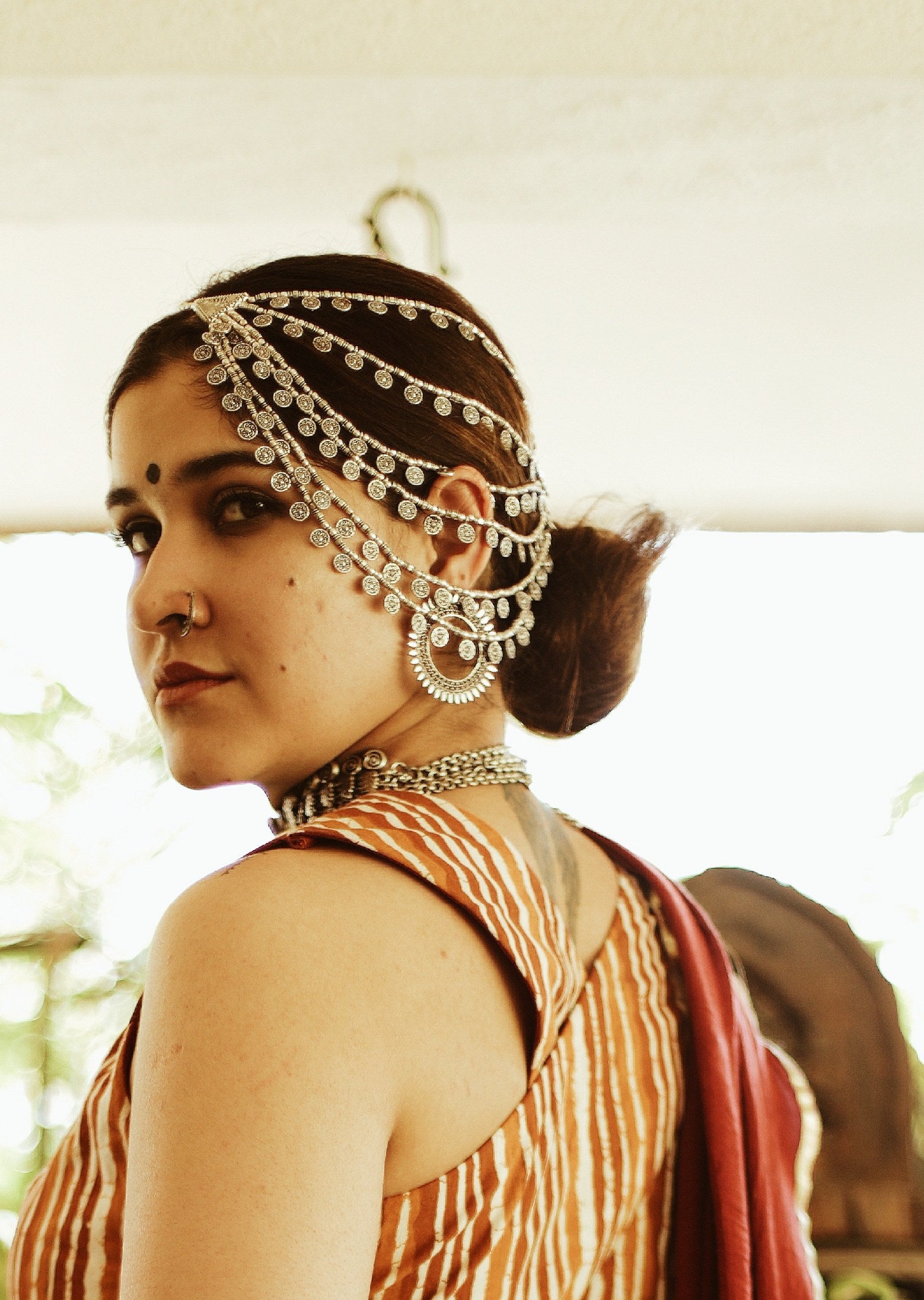 Make a striking statement with the Six Layered Coin Necklace. This impactful piece, crafted from brass with an antique-polished German silver coating, features multiple layers of intricate coin motifs. A confident and versatile necklace designed for a commanding presence