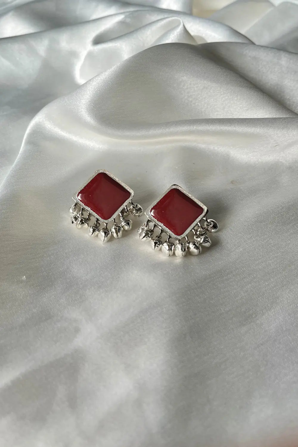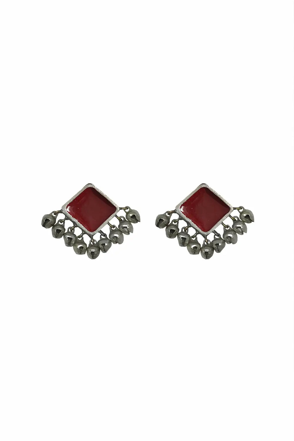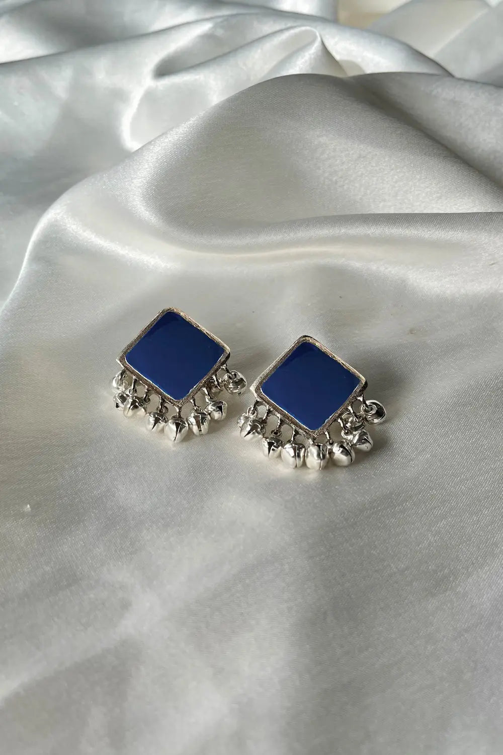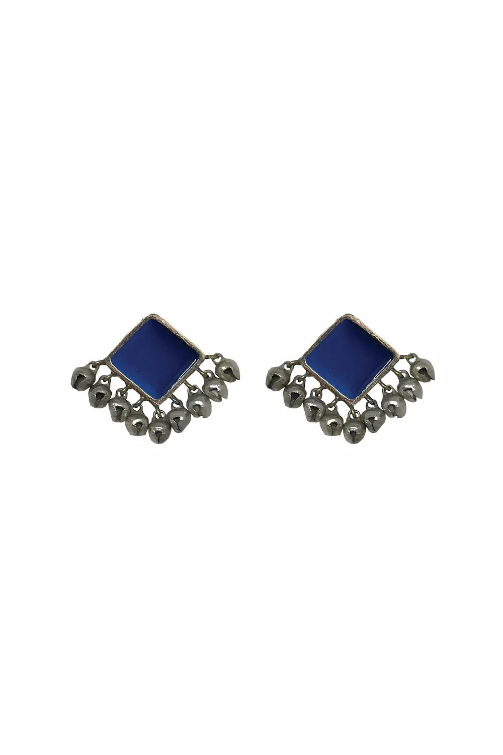 These beautiful pair of earrings are handcrafted to perfection using fine quality brass, ghungroos and navy blue enamel with light silver plating on it. Traditional look with modern simplicity is what these earrings has to offer.