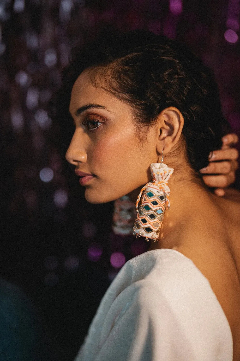 - Shop Kruti Arts Handcrafted Earrings, perfect for festivals and parties. Made with cotton fabric, oxidised metal, and wooden frame in elegant Off White, Orange, and Peach hues.