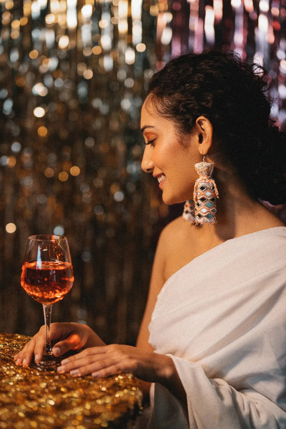 I wore the peach Thandai earrings to my daughter's school annual day where we both matched outfits. They looked so graceful and added just the right ethnic charm. I felt so confident in the crowd, all thanks to this little touch.