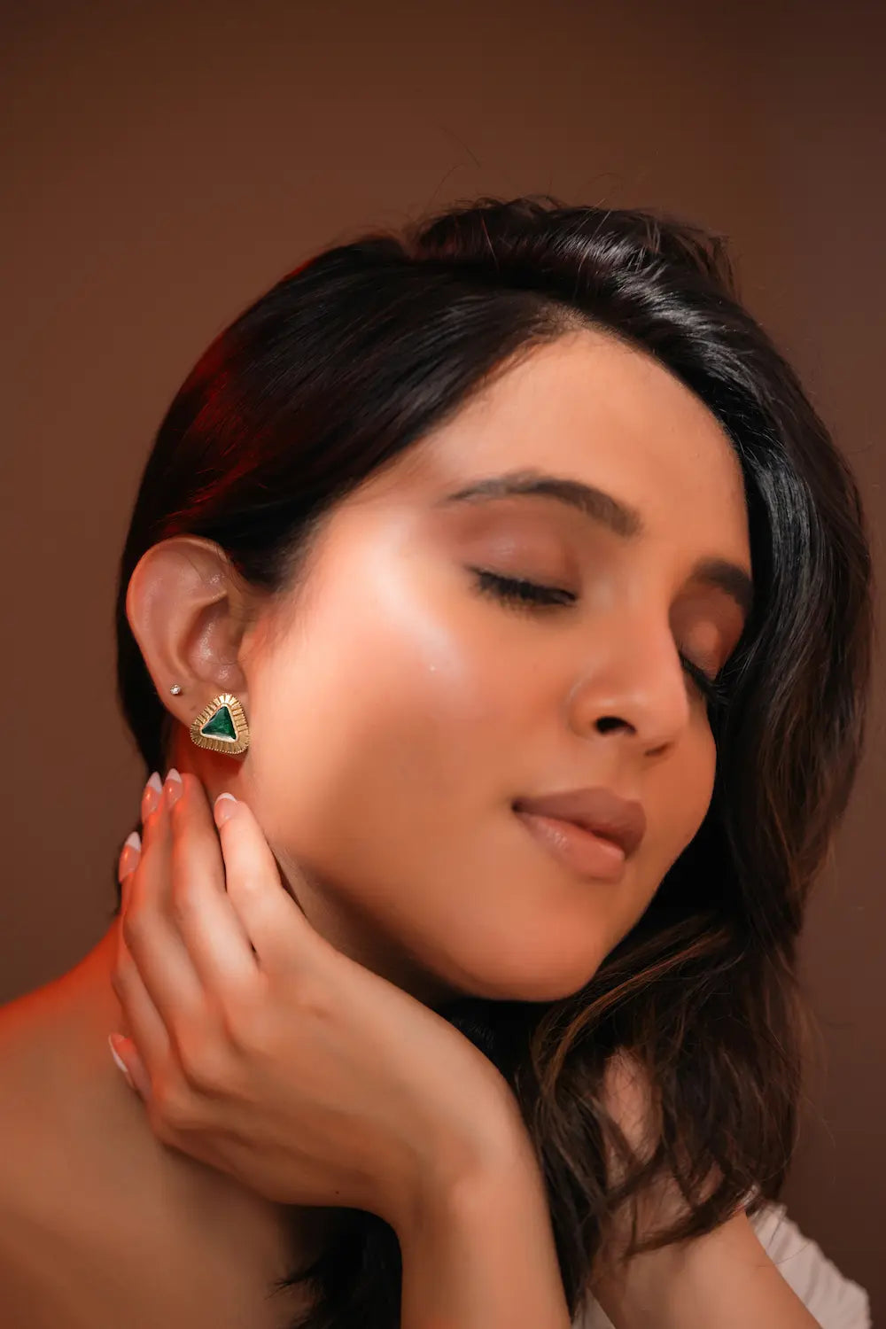 Timeless elegance with the Regalia Trio, featuring three exquisite stud earrings in gold-tone brass. These versatile designs, with intricate detailing and vibrant hues, effortlessly complement your style for any occasion, blending modern sophistication with a hint of tradition.