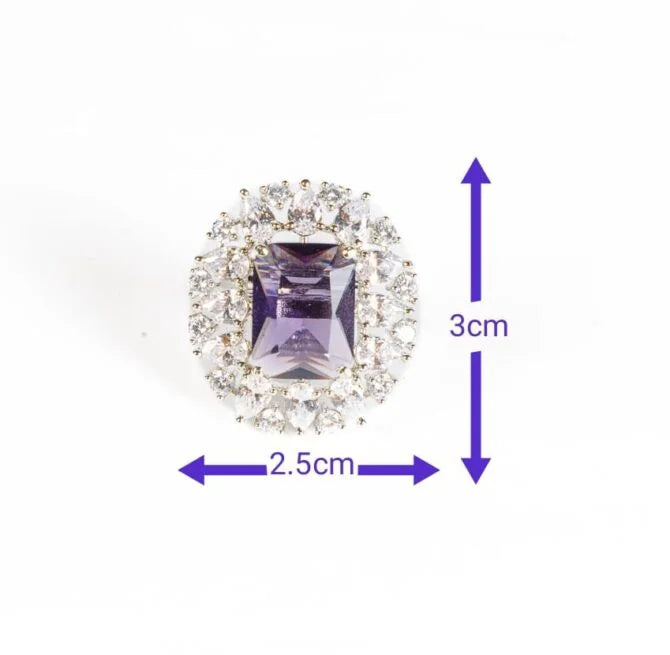 Indulge in the opulence of our Cubic Zirconia and Blue American Diamond Cocktail Ring. This statement piece, featuring an oval-shaped design with high-quality cubic zirconia and American diamonds, promises unmatched brilliance. Its silver polish enhances the captivating crystal and blue hues, offering an exceptional addition to your jewelry collection. embodying luxury and sophistication.